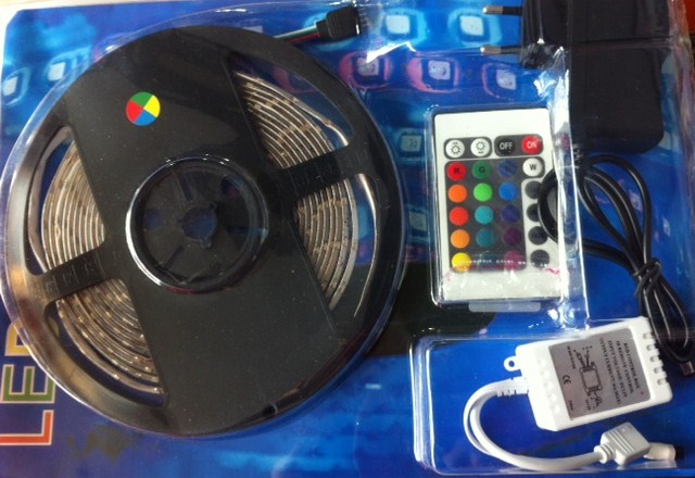 Πλήρες σετ ταινία LED 5 μέτρων αδιάβροχη – αυτοκόλητη – εύκαμπτη πολύχρωμη 12 volt με τηλεχειριστήριο.